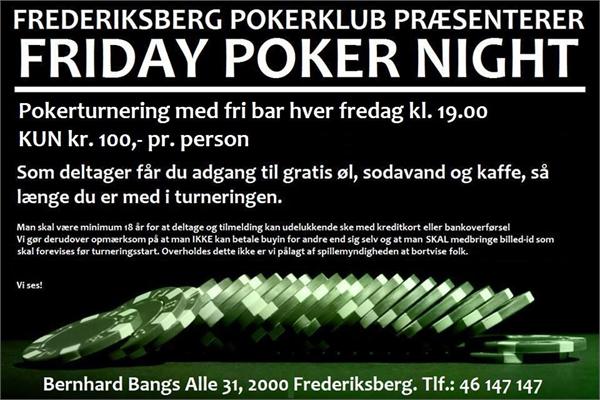 Frederiksberg Pokerklub byder velkommen til pokerturnering inkl. fri bar, fredag d. 30/8 kl. 19:00